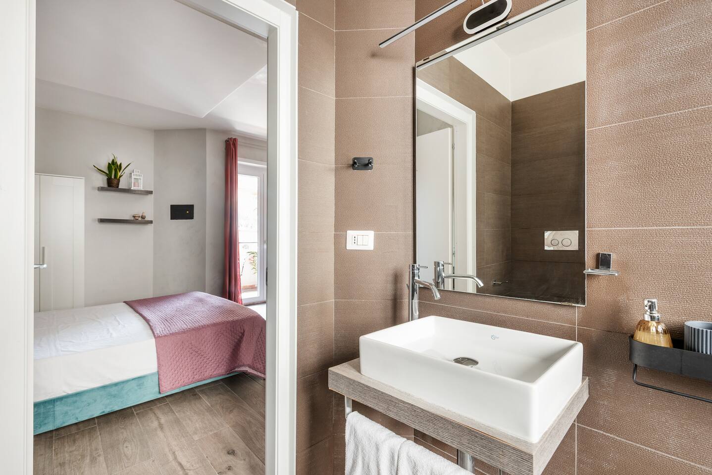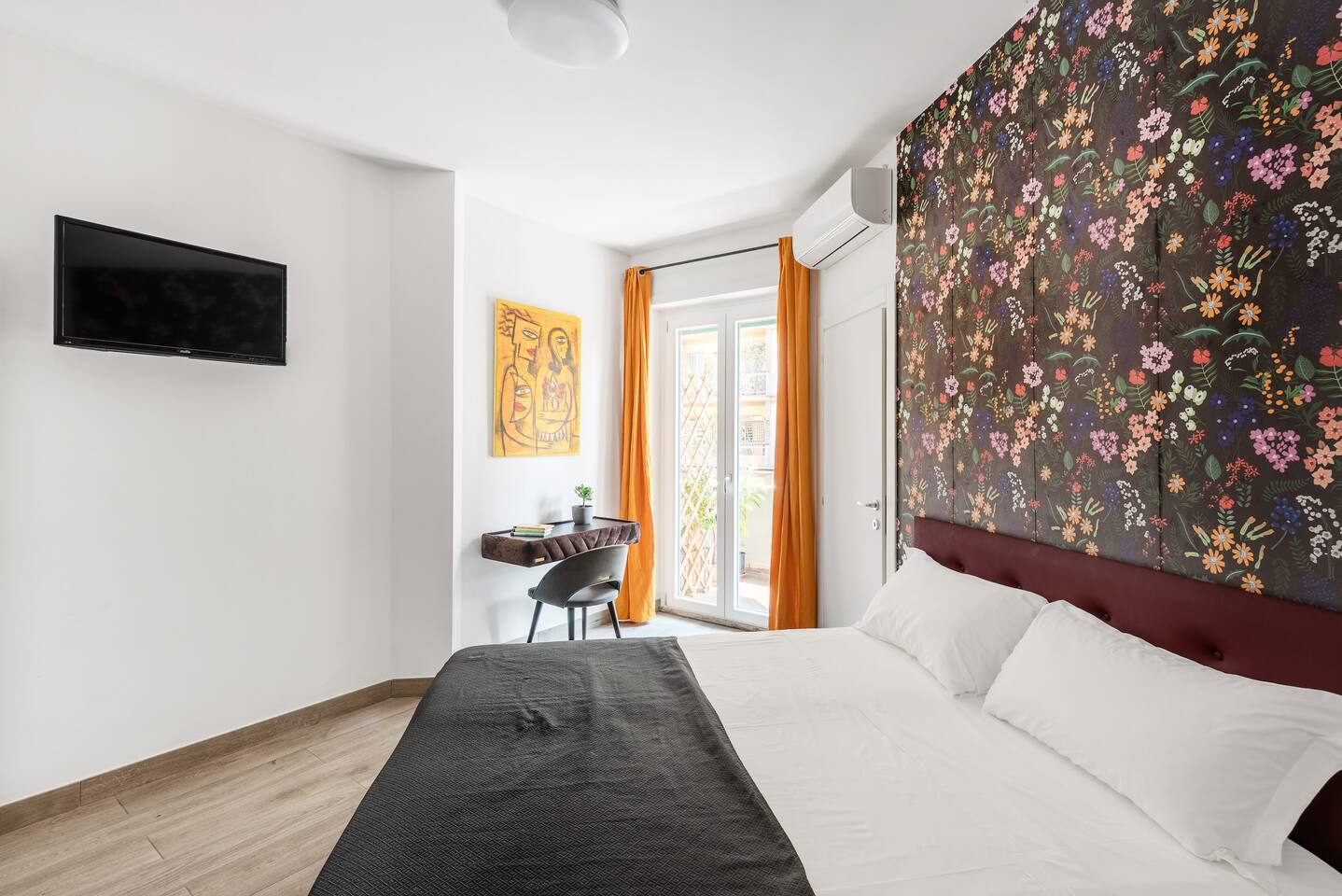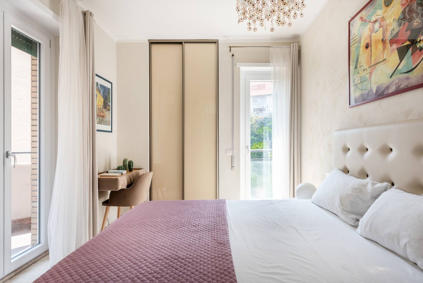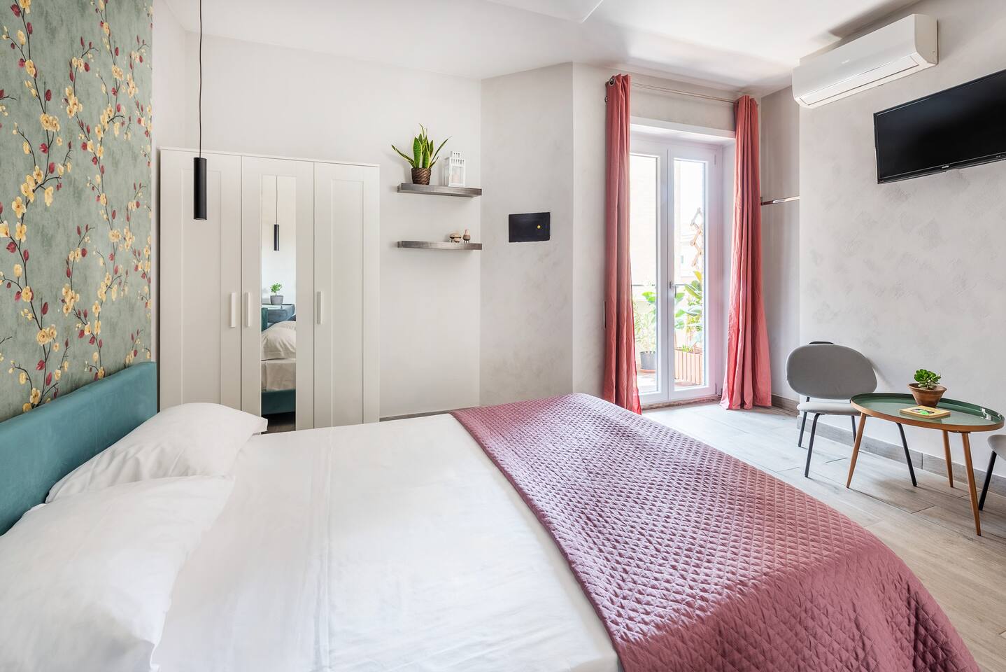 Spacious and bright apartment with 3 double bedrooms, each with its own private bathroom and terrace. There is also a shared living area. Each room has its own unique decorative style and is very bright. It is very well connected to the center of Rome, both on foot and by public transport. The tram/bus stop is 30 meters away, and the nearby Trastevere train station provides easy access to the airport and other points in the city and region.