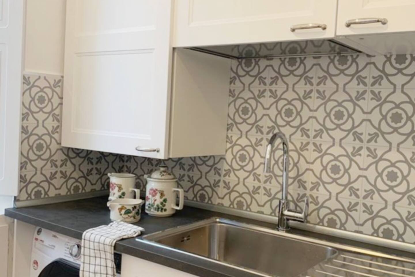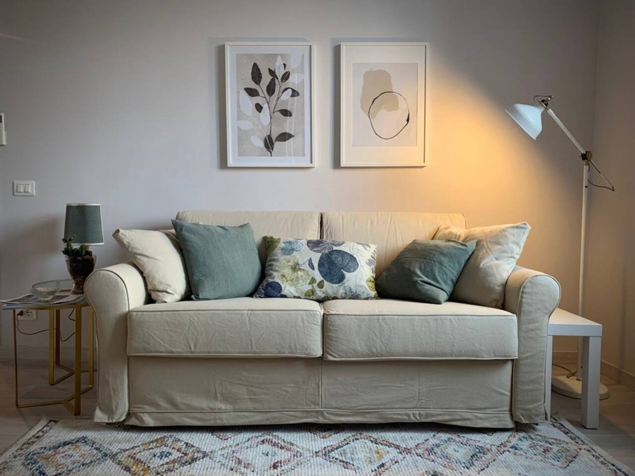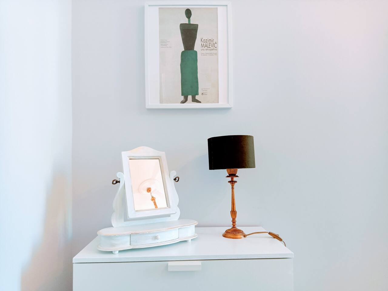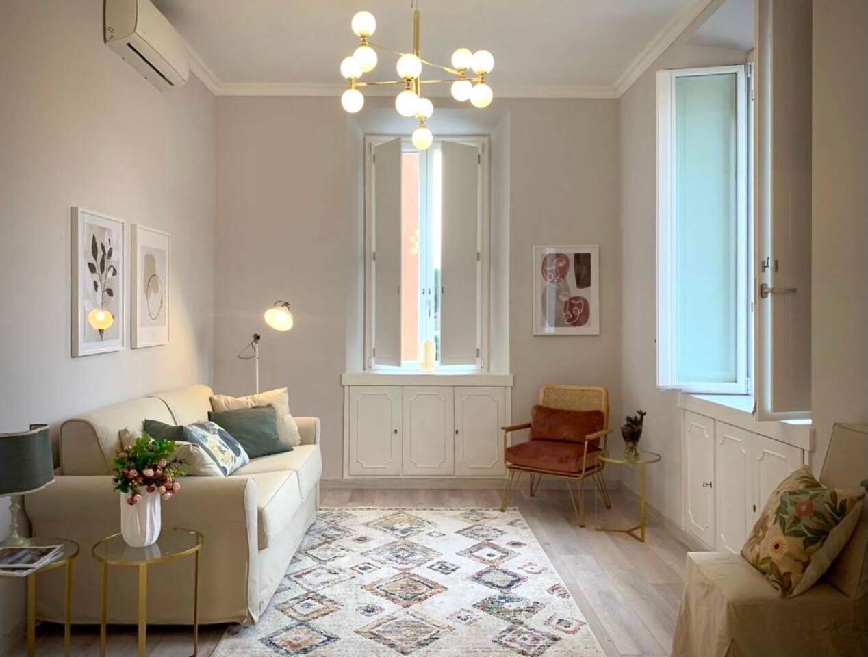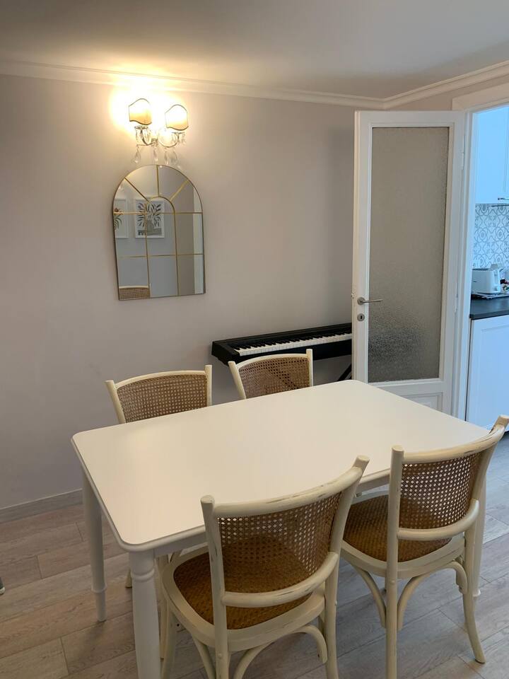 The apartment is spacious and full of light with large windows. The bedroom is spacious and with connecting doors to the sitting room where a sofa bed is available, perfect for families or a group of friends. The bathroom has a large walking shower, and the kitchen has a dinning table where your family and friends will enjoy having a relax conversation after a long day visiting museums. There you can cook a quick meal or have your refreshments ready in the fridge.