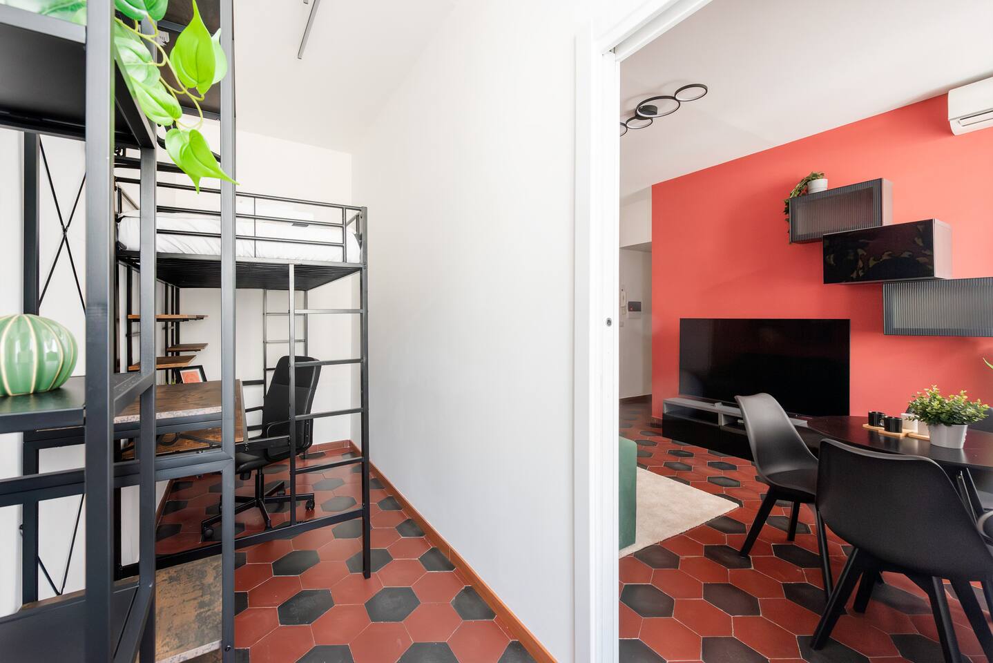 The property consists of: - A living room with a dining area and a sofa bed, which we can set up as a bed upon request. - A small bedroom/studio with a bunk bed and a comfortable desk for work. - A kitchen with a refrigerator, microwave, induction stove, and other accessories such as a coffee maker, kitchen utensils, glasses, plates, etc. - A bathroom with shower and bidet - Wi-Fi - Air conditioning (hot/cold) A set of sheets and towels per guest, as well as bathroom amenities for the first 2-3 days, are included. For longer stays, you can purchase items you need in the local shops.