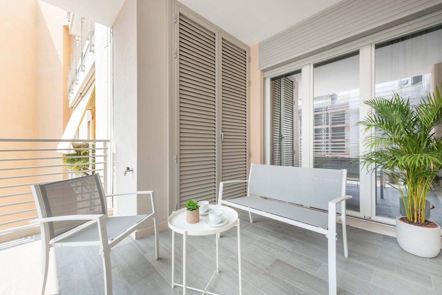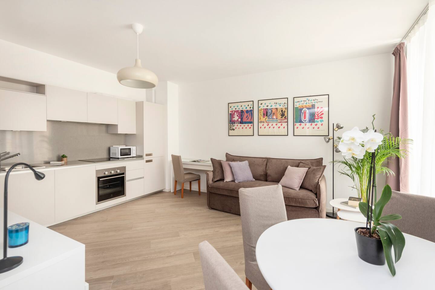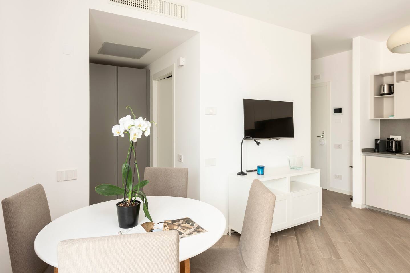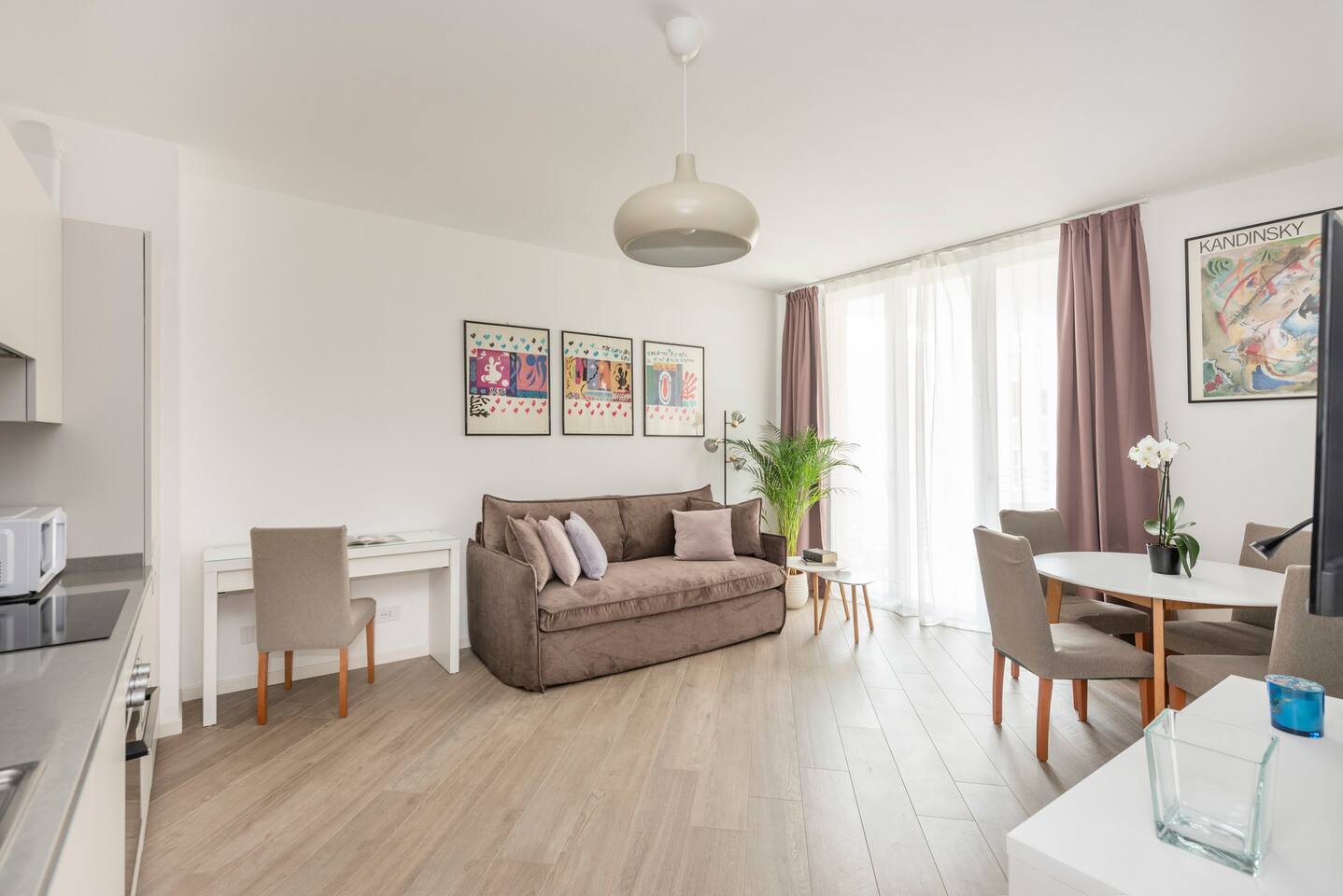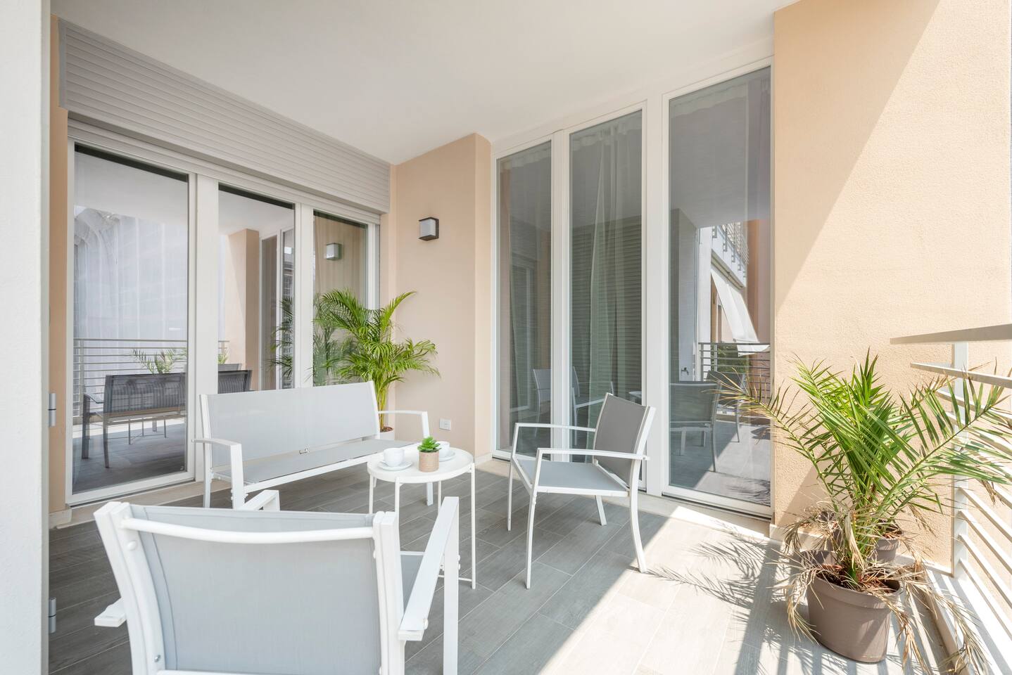 Casa di Miranda is ideal for a couple or a group of up to four people with a double bed in the bedroom and a comfortable sofa bed for two in the living room. Casa di Miranda is elegantly decorated with posters of historical contemporary art exhibitions, it has large closets, a bathroom with a large shower. It has all the necessary comforts to spend several days in it, such as a perfectly equipped kitchen, dining area, A/C, underfloor heating, washing machine, dishwasher or WIFI to stay connected with relatives and friends or if it is necessary to work. You can also enjoy a comfortable terrace to get some fresh air while you enjoy an aperitif, when the weather permits. The building has a large elevator and the beauty of its hall will welcome you before entering the apartment.