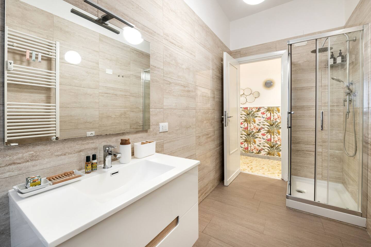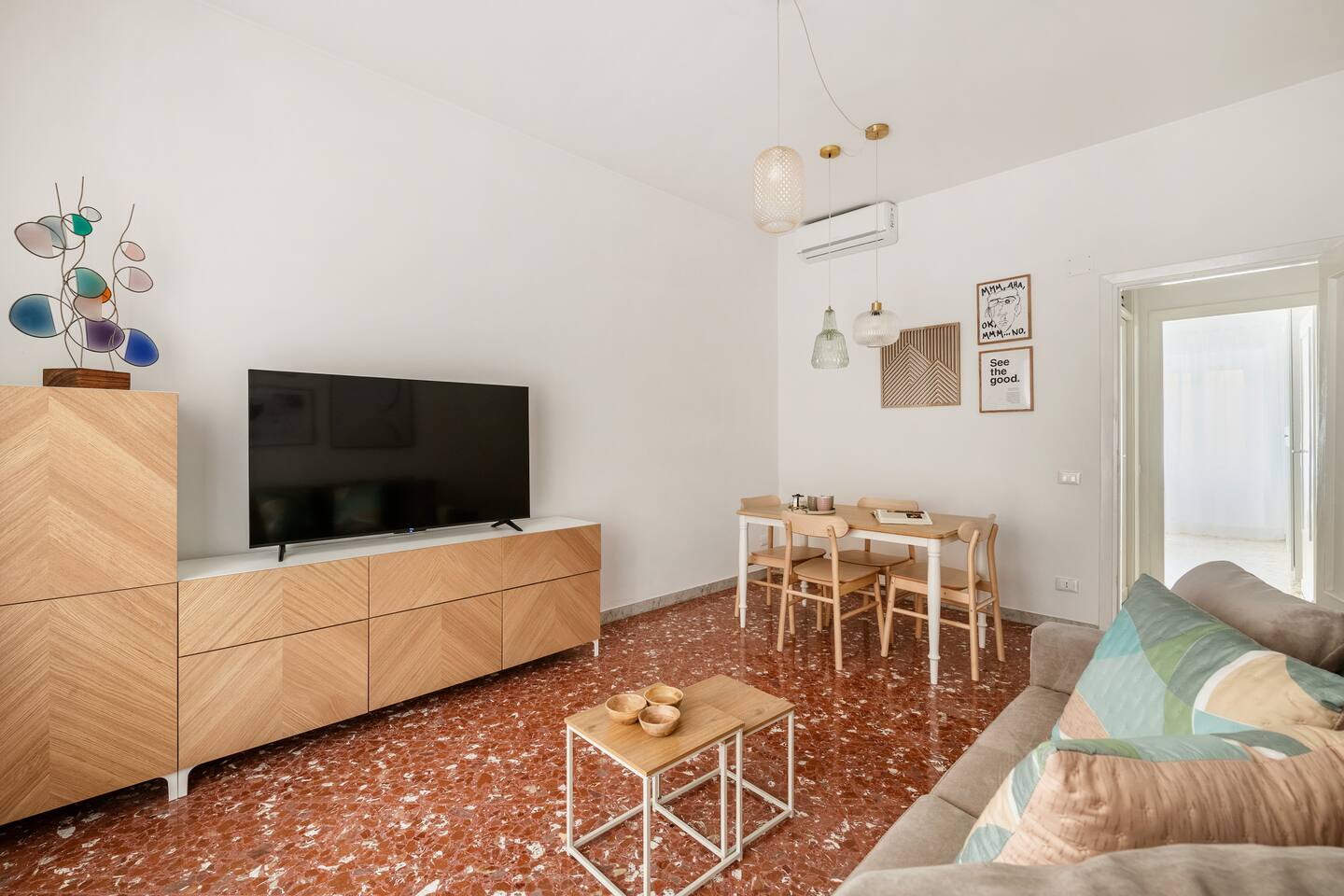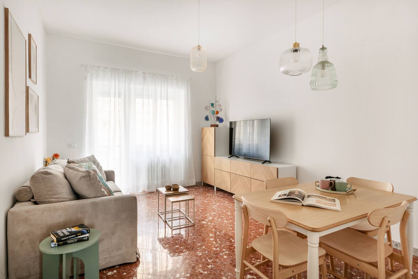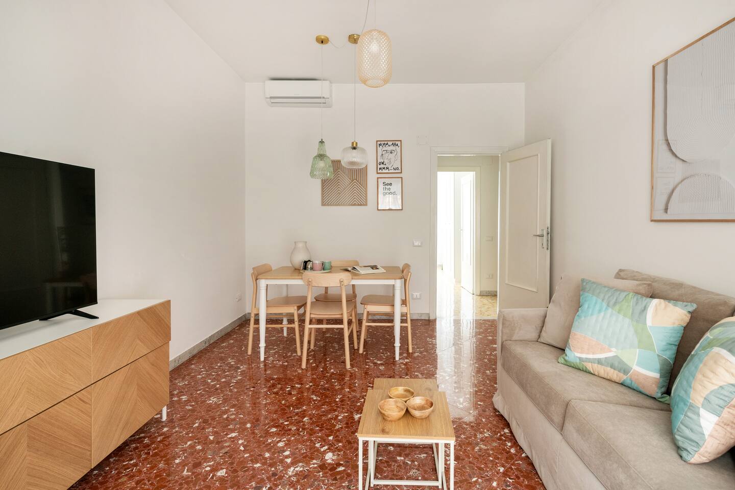 Welcome to your charming retreat in Pigneto, Rome! This beautifully decorated first-floor apartment features two elegant double bedrooms, a sleek bathroom, and a fully equipped kitchen. The inviting sitting room, located at the end of the hallway, offers plush sofas, a flat-screen TV, and Wi-Fi for relaxation and a dining area. Enjoy year-round comfort with air conditioning and central heating. Explore Pigneto's vibrant cafes, restaurants, and artistic vibe right at your doorstep.