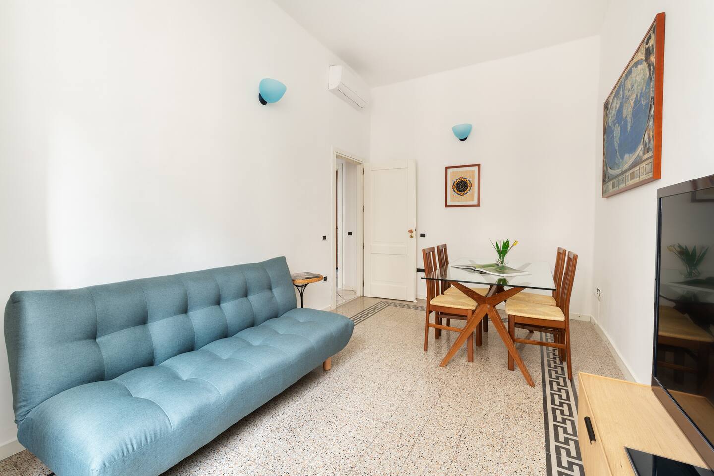 The whole apartment is available, except access to a closet reserved for cleaning service and technical parts.